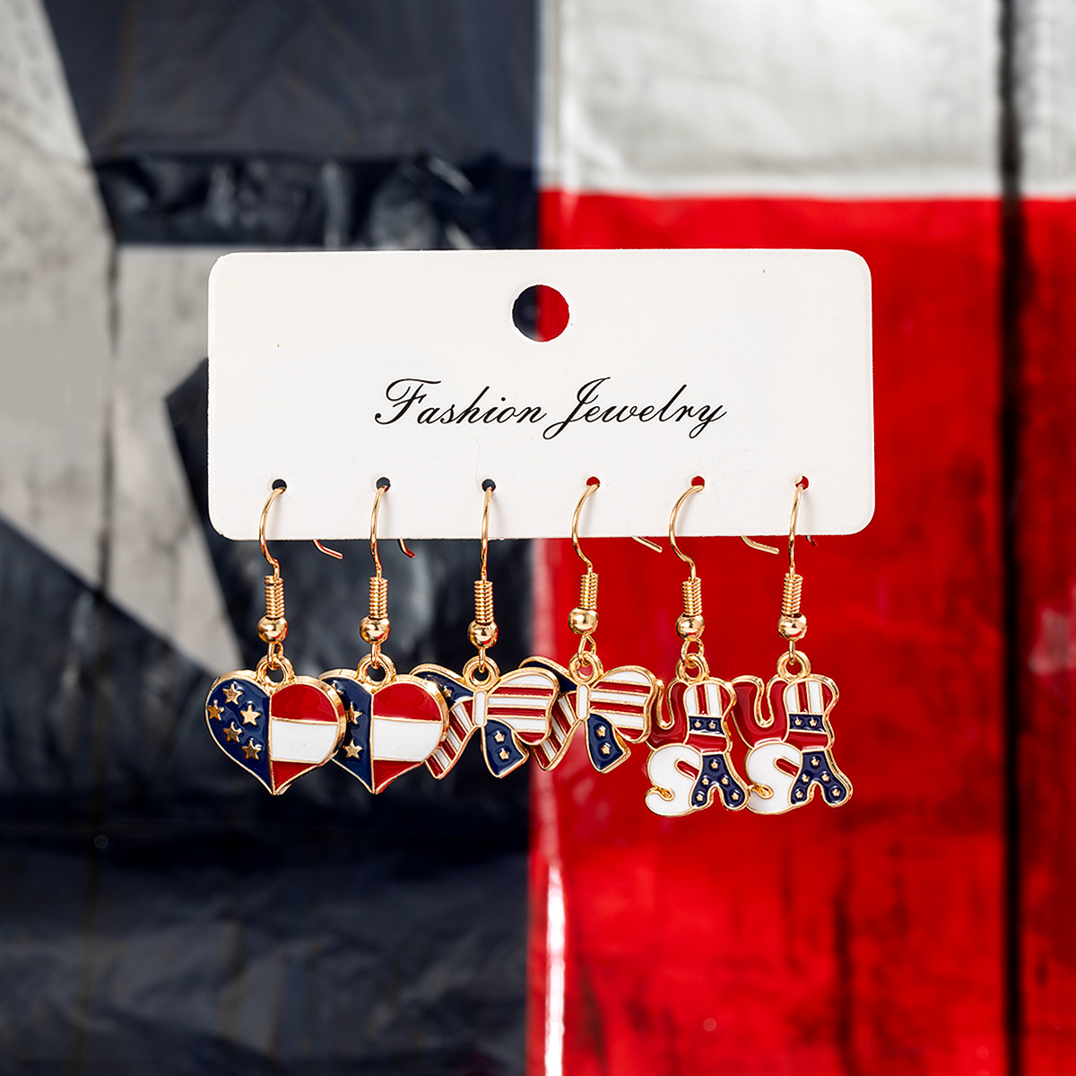 クロスボーダー新しいアメリカ国旗独立記念日イヤリング合金ラブリボンペンダントレディースカードセットイヤリング
