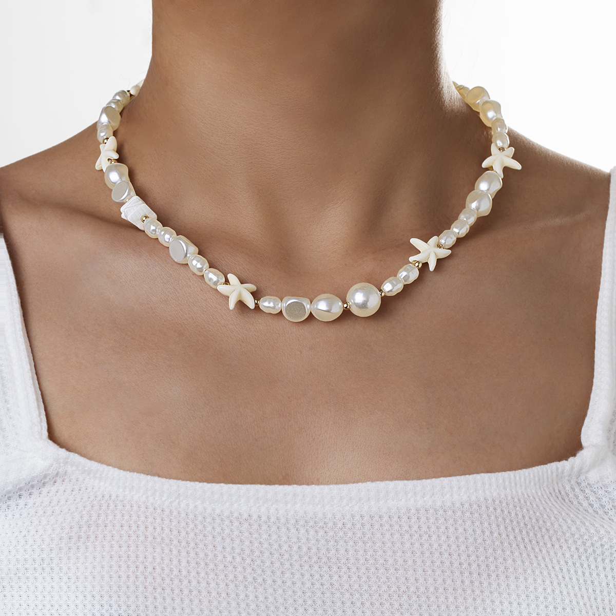 ボヘミアンリゾートスタイル模造ターコイズヒトデ模造パールビーズ調節可能な女性の単層鎖骨チェーンジュエリー
