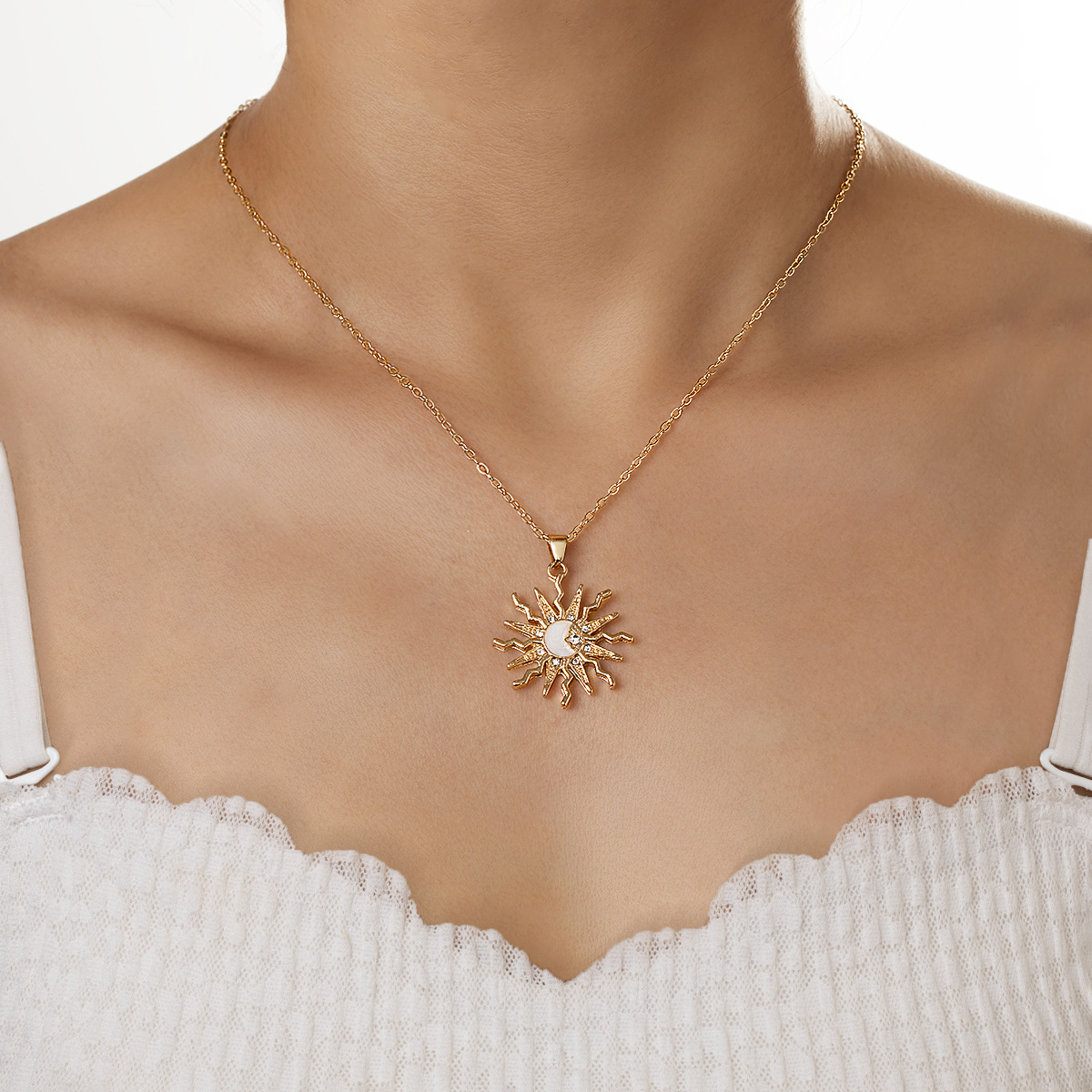 Amazon トレンドホットセール新製品ファッション合金サンスターペンダント細いチェーン調節可能なレディースネックレス