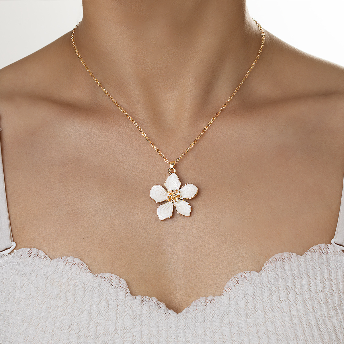 韓国の新鮮で甘いニッチ多用途通勤立体フラワーペンダント細いチェーン調節可能な女性の合金ネックレス