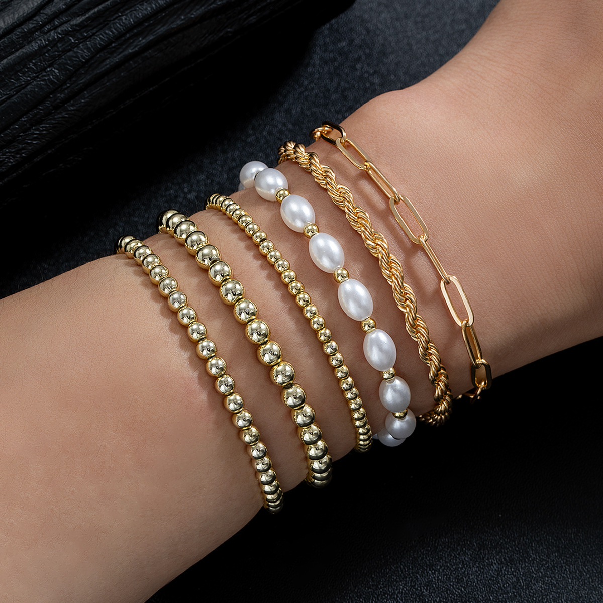 クロスボーダーヨーロッパとアメリカのファッション多用途通勤ペーパークリップチェーンイミテーションパールCCBビーズ弾性ブレスレット6点セット女性用