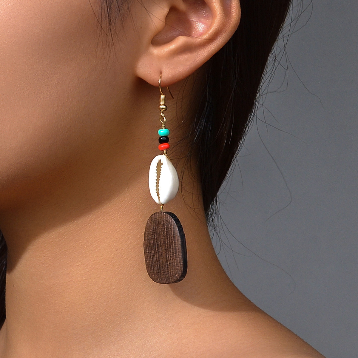 ボヘミアン民族風天然貝殻カラービーズ楕円木札ペンダントイヤリングはビーチ休暇に適している