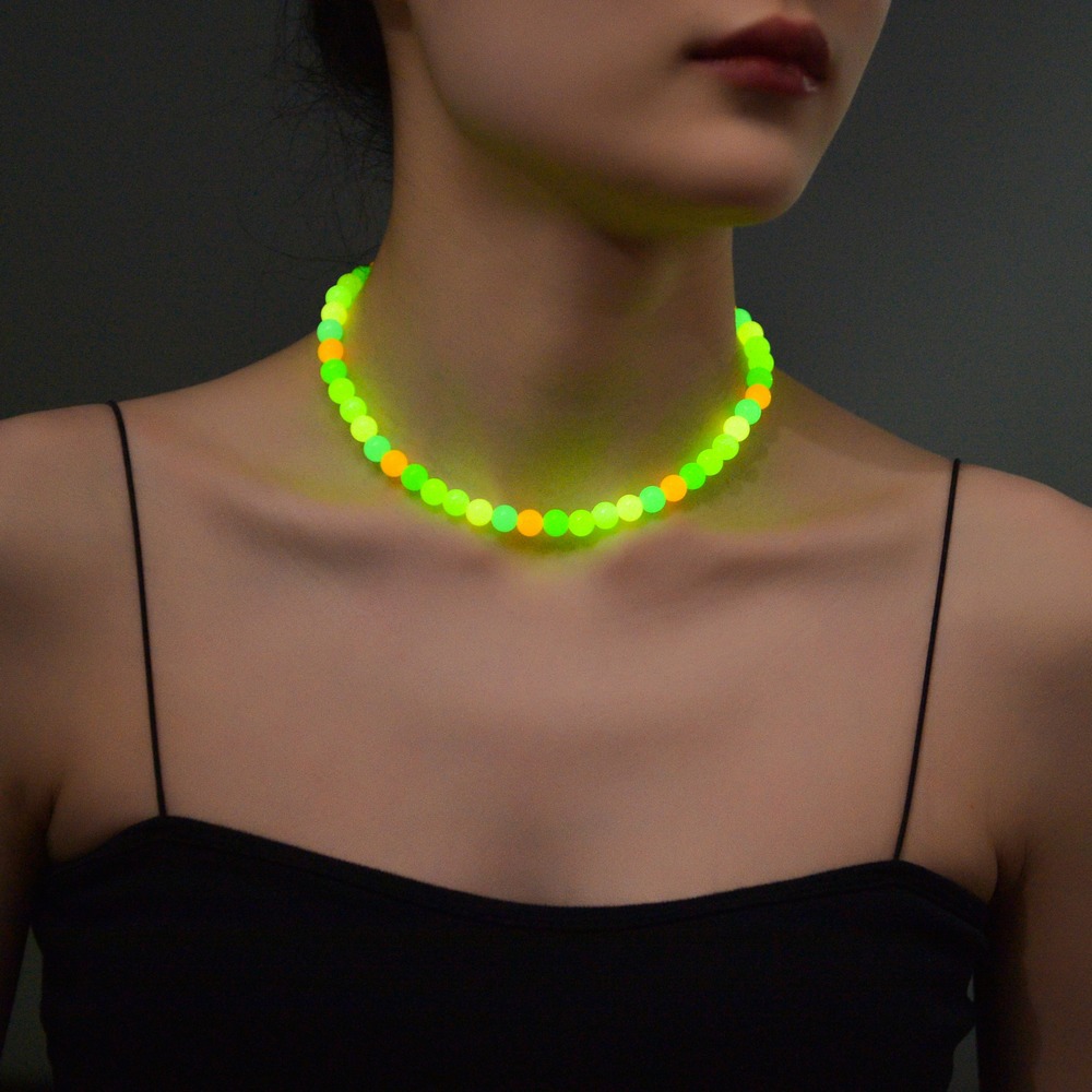 ボヘミアンホリデースタイル発光ランダムアクリルカラービーズレディース鎖骨チェーンネックレス