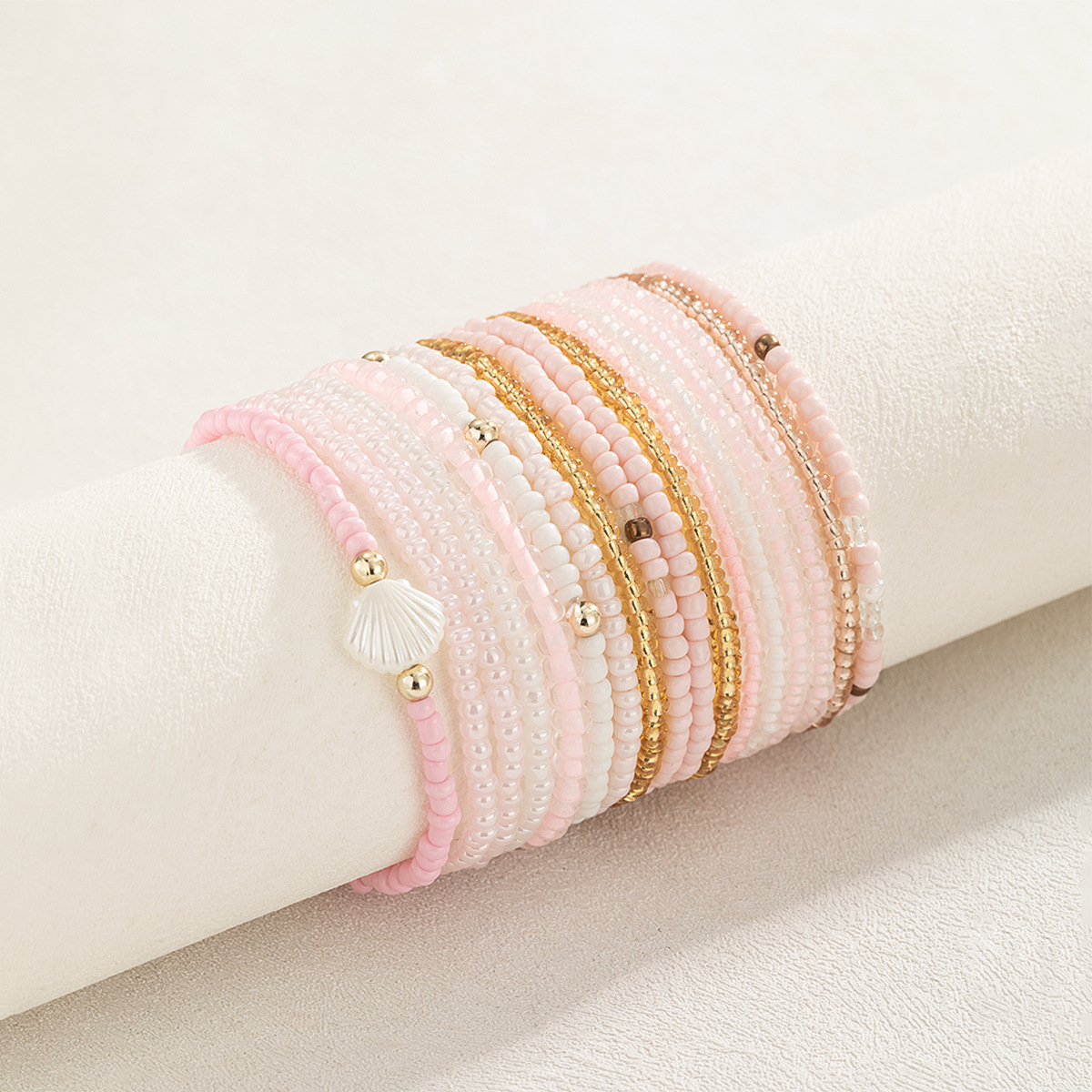 ファッション通勤風樹脂ホタテ多色米珠CCBビーズ弾力婦人ブレスレット17点セット