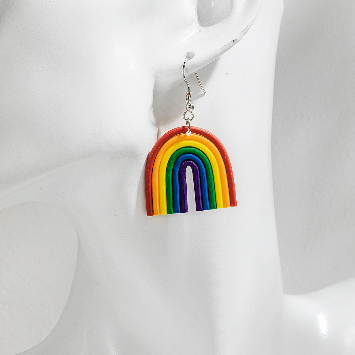 ファッション個性風カラーソフト陶虹アーチ形ペンダント合金イヤリングは通勤休暇パーティーに適している