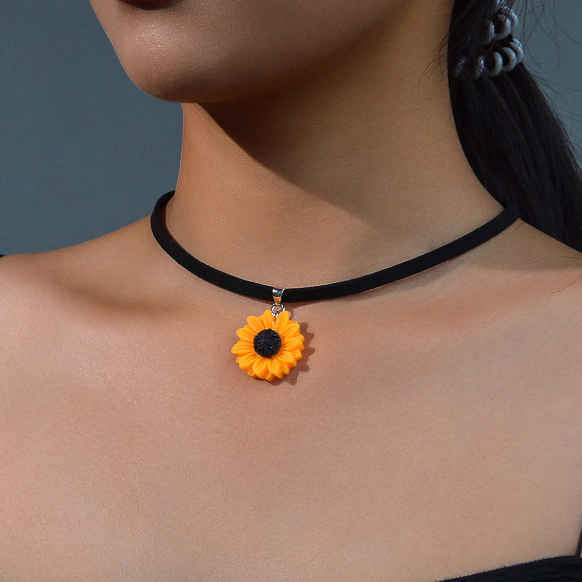 クロスボーダーボヘミアン民族風樹脂ひまわりペンダントフランネル調節可能な女性用ネックレス