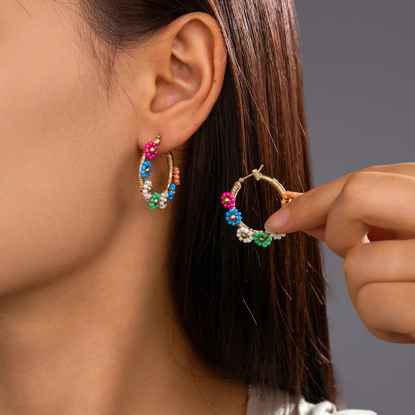 おしゃれな甘い風カラービーズ花合金リングイヤリングは、女性の女の子の通勤休暇パーティーに適しています
