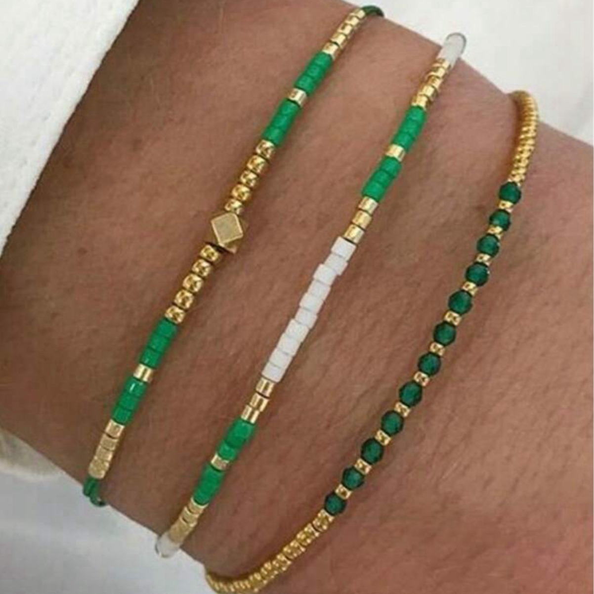 ボヘミアンのリゾート風の不規則な松石海星の玉の弾力性のある足のチェーンの3セットはビーチパーティーに適しています。