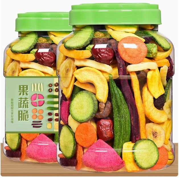 総合果物と野菜のサクサクとした五目の果物と野菜の乾燥混合物とオクラのシイタケのサクサクとしたマンゴーとバナナのスライスの冷凍乾燥スナック