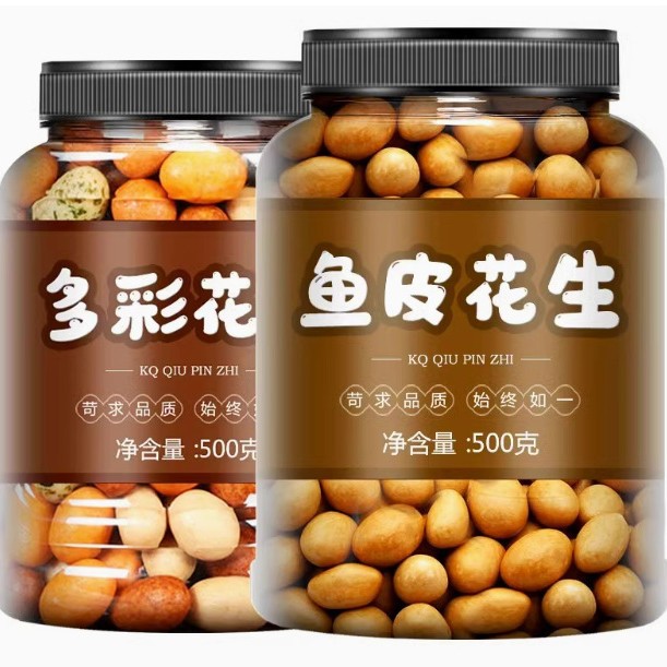魚の皮のピーナッツ500gの缶の三味の魚の皮の豆の脆い皮のピーナッツのお菓子は多彩なピーナッツのピーナッツを脱油します。