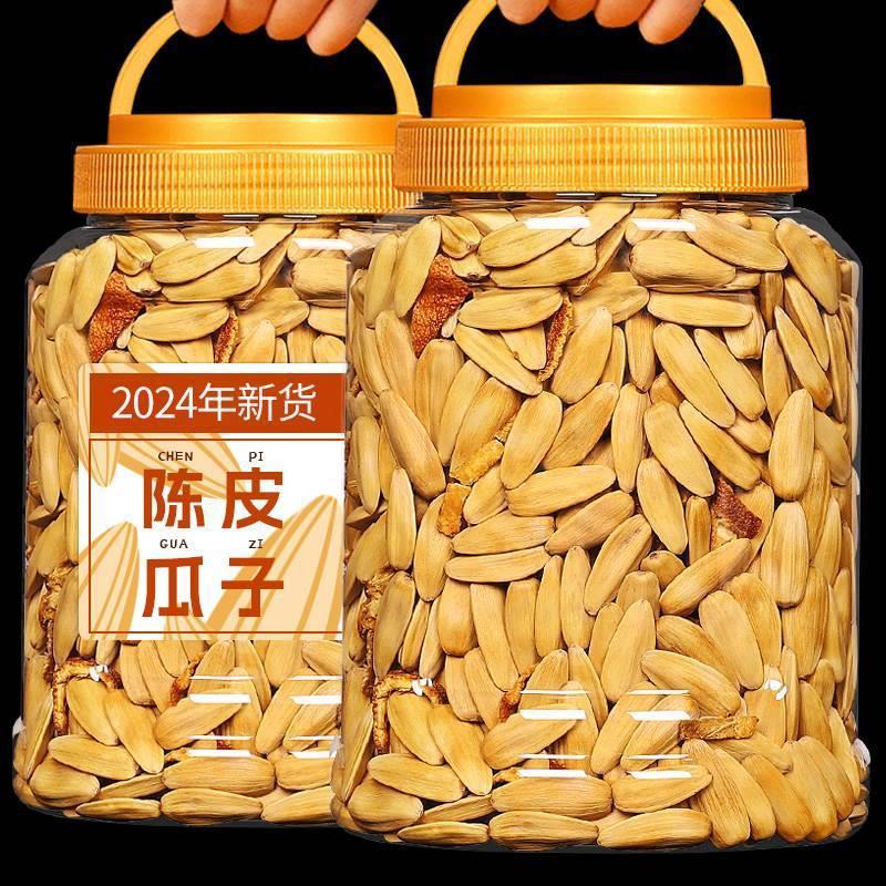 新品のオレンジ味の陳皮瓜子400g缶入り大粒ネット赤瓜子スナック