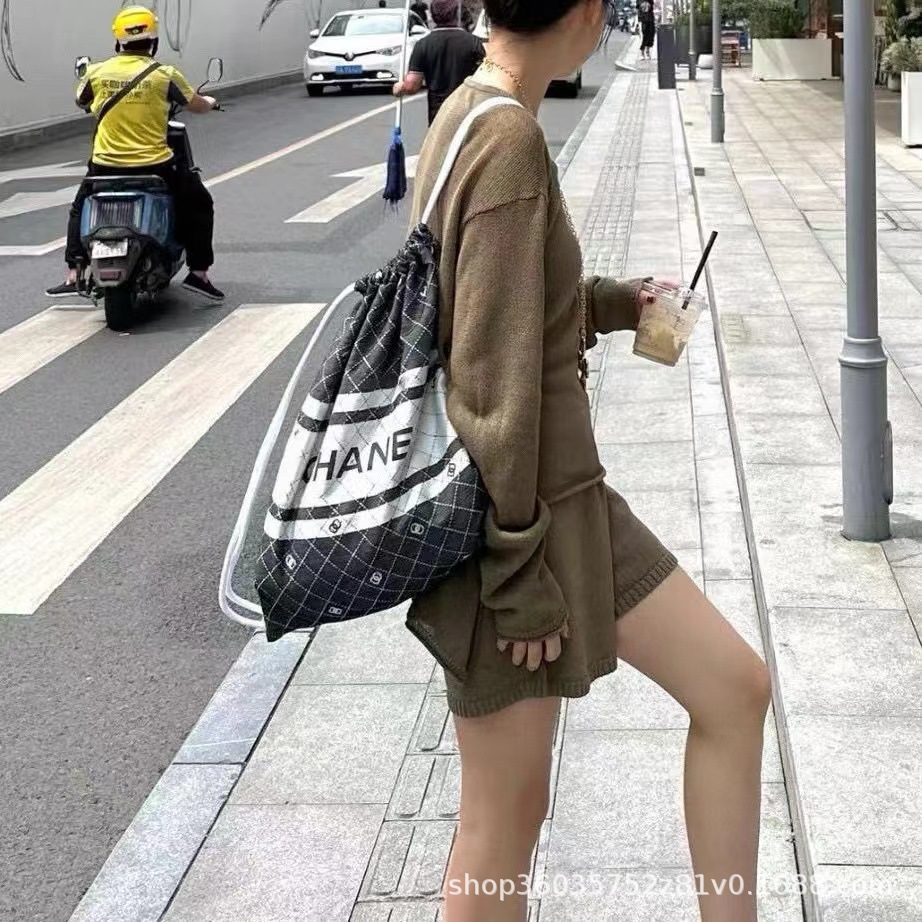 2025春夏の新型外出レジャーと女性の巾着バッグ菱格バケツバッグビーチバッグバスケットボールバッグ女性大容