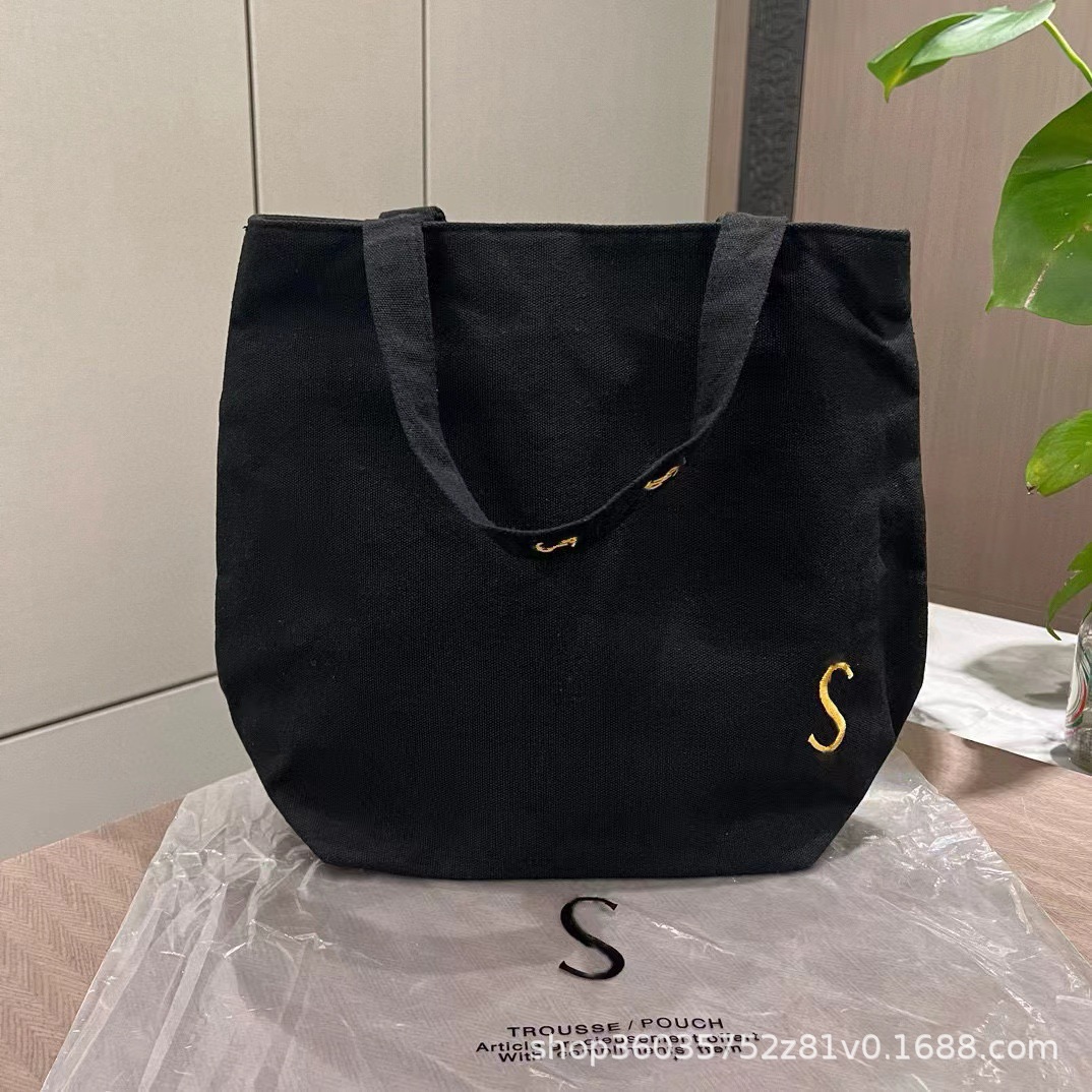 アルファベットy帆布手提げトートバケツバッグ純黒怠惰風刺繍マーク百合手持ちシンプル通勤
