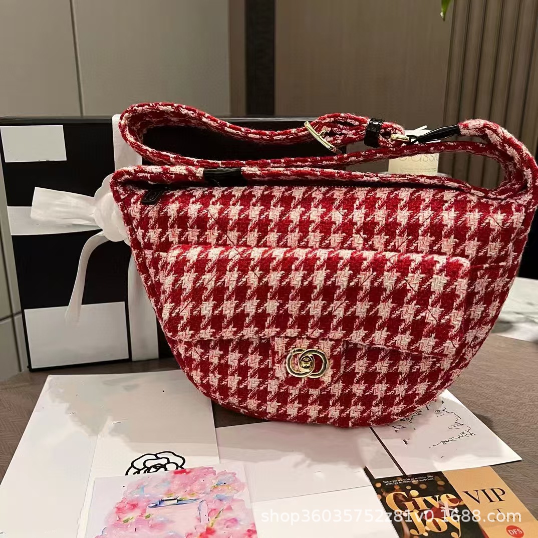 海外会員礼vipギフト秋冬新作jennie同梱赤格子鞍包女性カバンショルダーバッグ