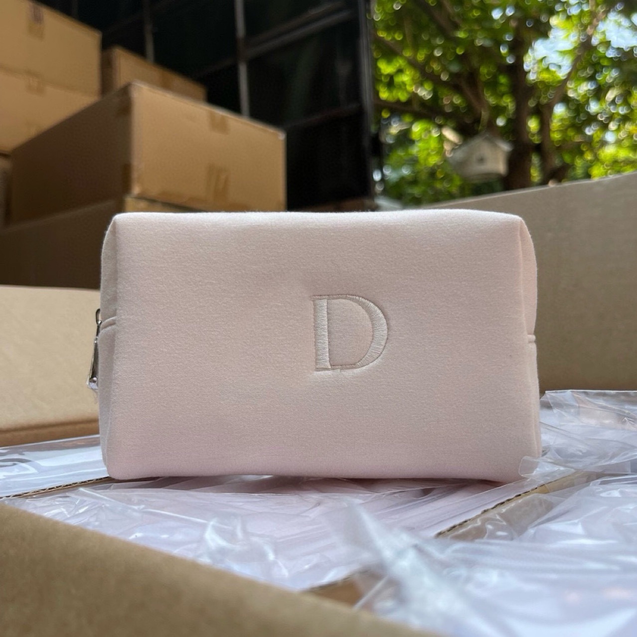 淡いピンクアルファベットDジッパー手持ちポーチミニかわいい口紅バッグポータブルカウンター化粧バッグ