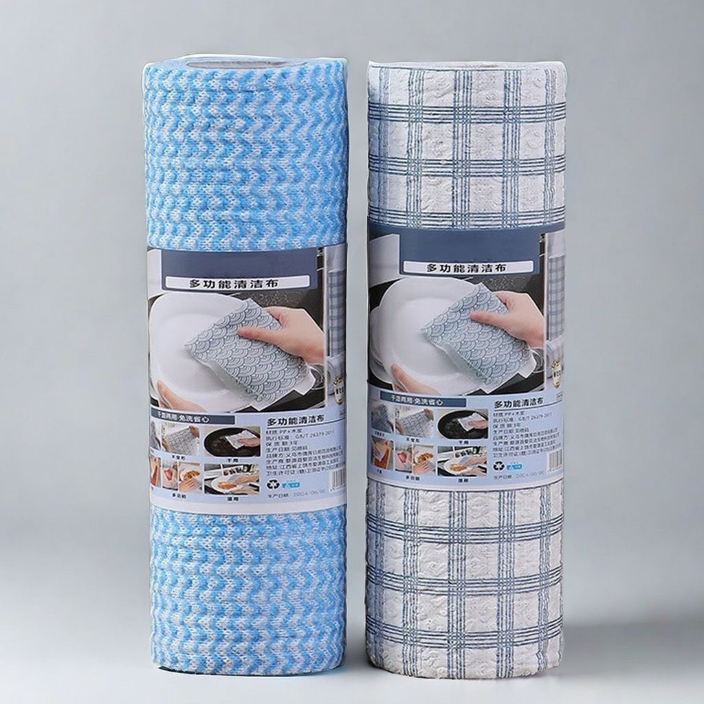 青い格子の食事マット式の怠け者の雑巾の台所の不織布の厚い食器洗いの布は水洗いして乾湿します。