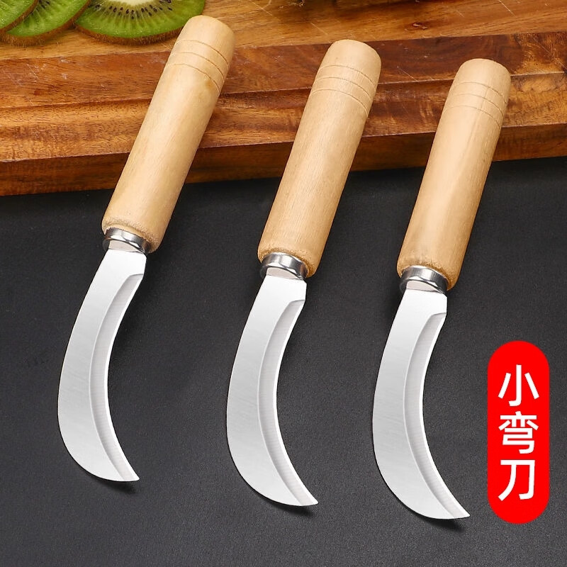 メーカー直売のステンレスの小さいカーブの刀のパイナップルの刀のバナナの刀の家庭用のバナナの刀は皮をむいてソーセージの小さいカーブの刀の卸売りを切ります。