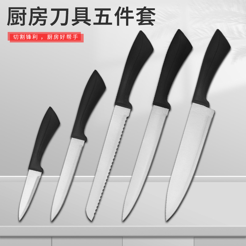 マルチインチシェフナイフキッチンナイフ5点セット多目的ナイフ黒プラスチックハンドル家庭用ナイフステンレス鋼セットナイフ