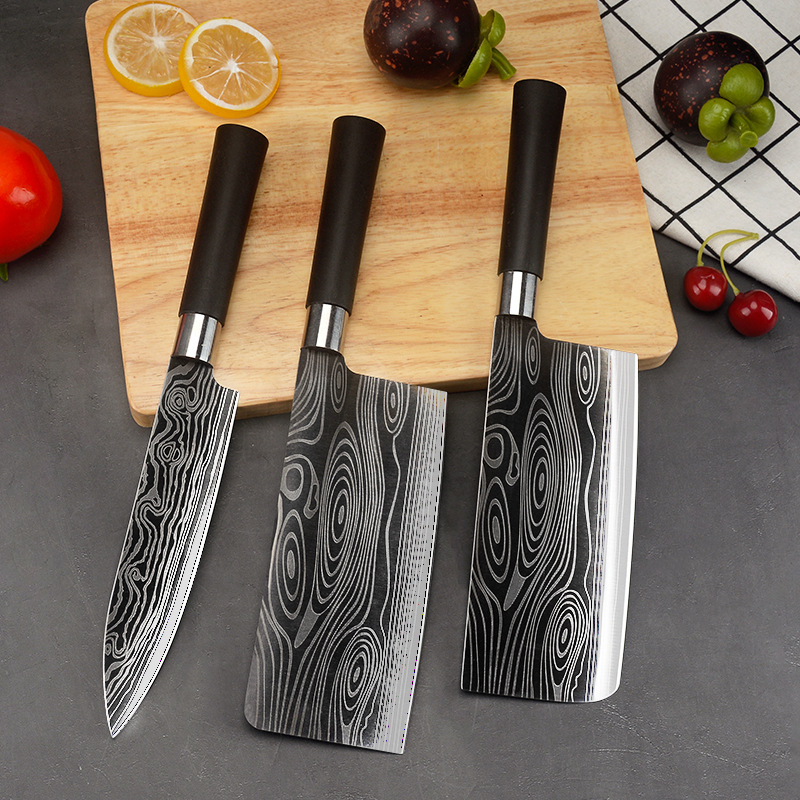 ステンレス鋼レーザーパターン包丁セット家庭用3ピースシェフナイフ包丁骨切りナイフパターンナイフ