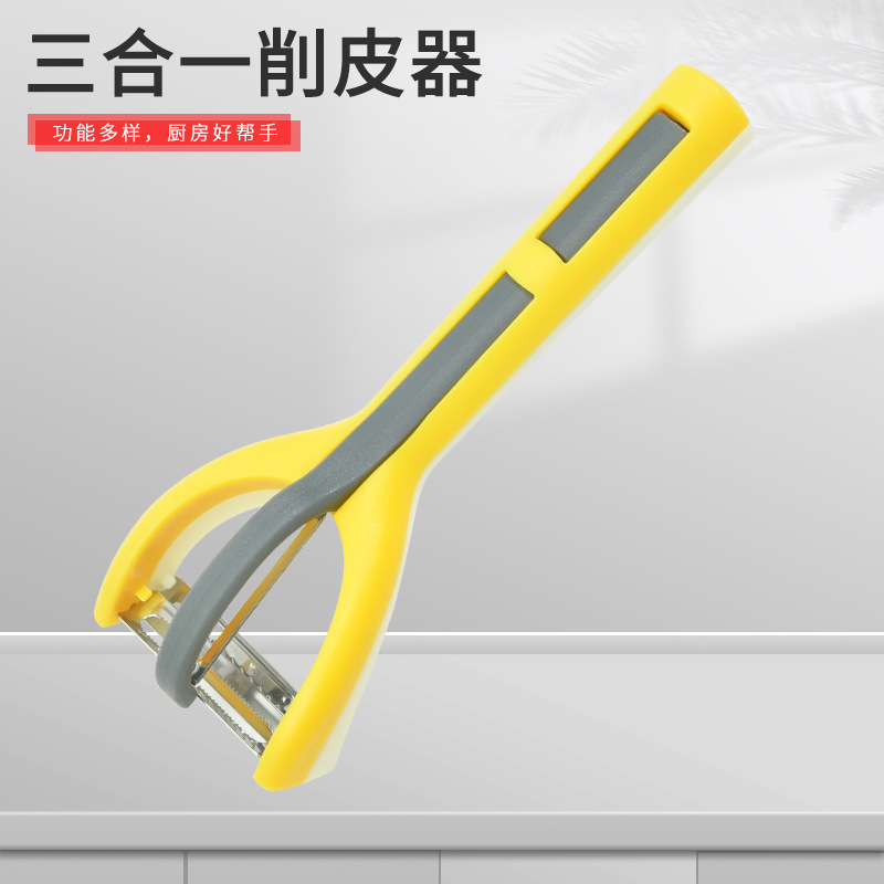 メーカー直送多機能ステンレスピーラー、スリーインワンピーリングナイフ、キッチンメロンピーラー、家庭用おろし金ピーラー