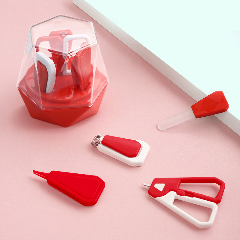 Ao昇菱形英倫風赤ちゃん爪看護携帯収納4点セット赤ちゃん専用挟み防止爪切り