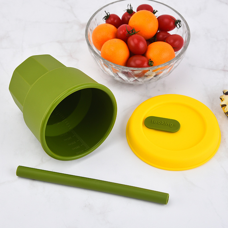 格好いい子供のシリカゲルストローは蓋を持って牛乳を飲みます。