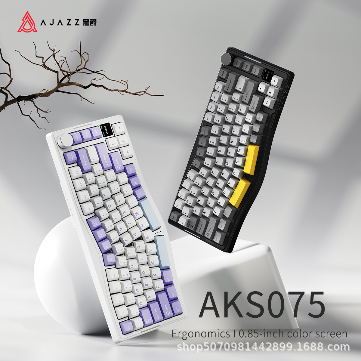 黒爵aks075無線ブルートゥース機械キーボード人間工学三モードガスケット構造VIAカラースクリーンRGB