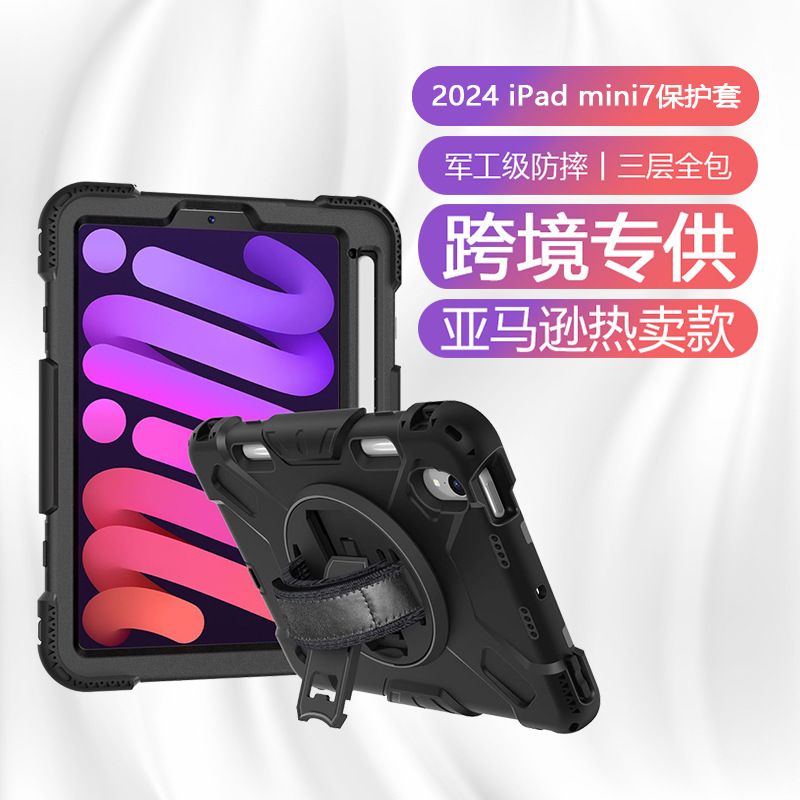 Apple iPad mini (A17Pro) スリープルーフ保護ケース ハンドヘルド回転スタンド iPad 保護ケースに最適