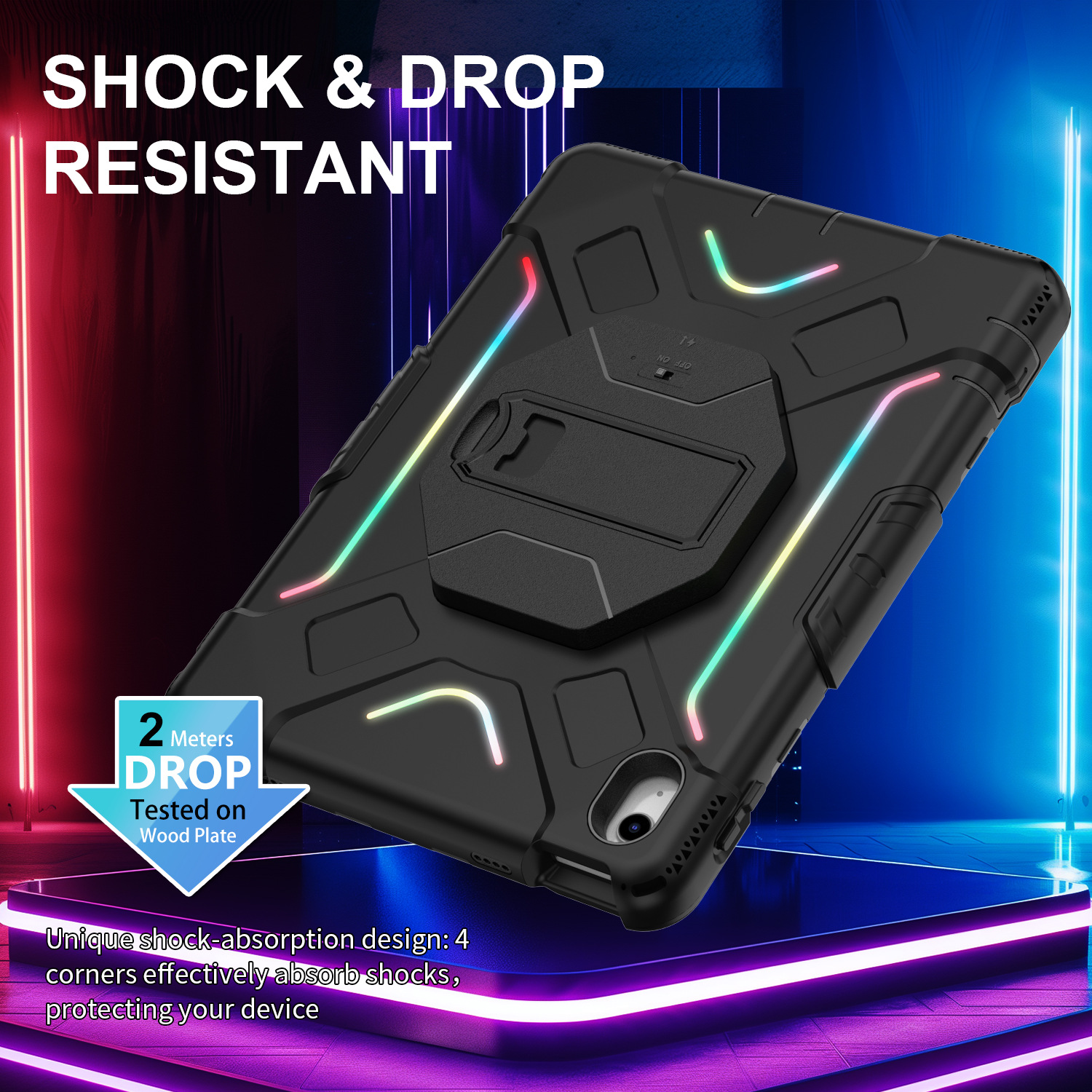 iPad Air11用三防保護ケース 防水・防塵・耐衝撃・落下防止・耐久性のあるスタンド付き 2024/2023年モデル対応