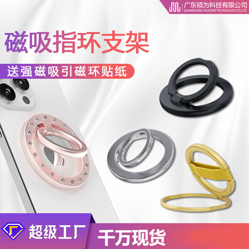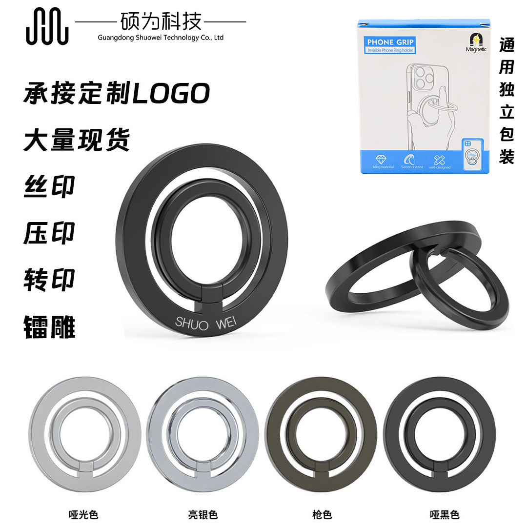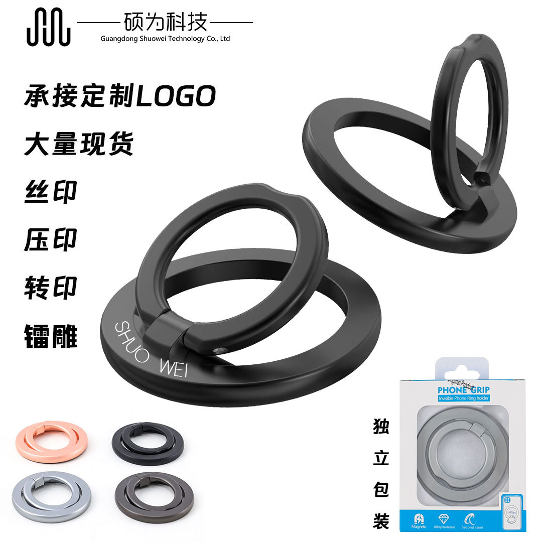 マグネット式指リング型スマホスタンド カスタムロゴ 強力吸着90 ° 折りたたみ式クリエイティブ合金製指環バックル アウトドア用