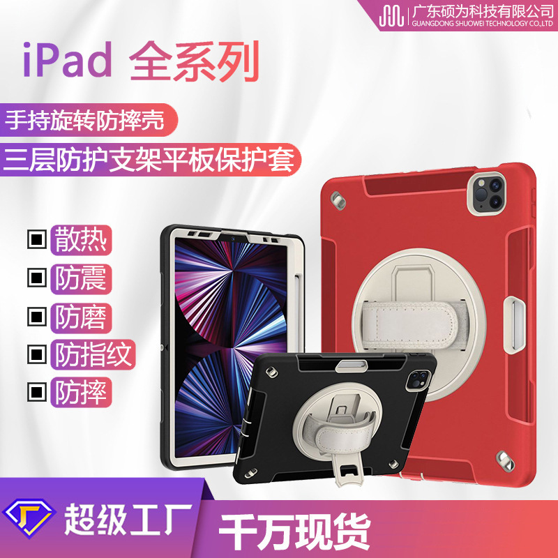 アップルipad三防平板曲げ防止保護カバー三層分割可能保護カバーペン付き溝付き縦スタンド
