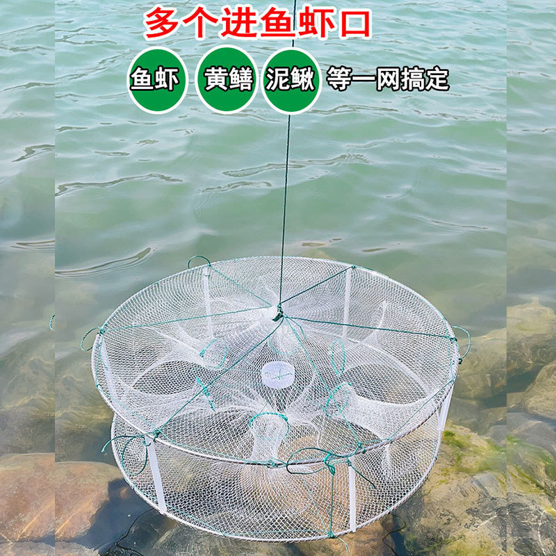 太い丸いエビ釣りかごエビかごウナギかご小魚網折りたたみ漁網 5 魚網白網キャッチマウス