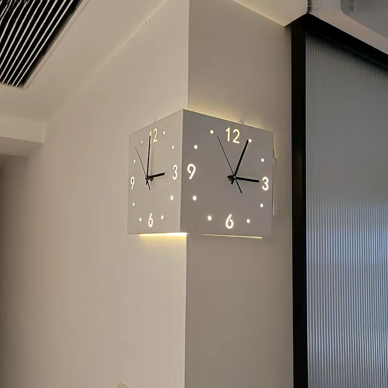 インスタイルコーナー両面時計リビングルーム用クリエイティブシンプルモダン時計パンチフリー静音両面時計