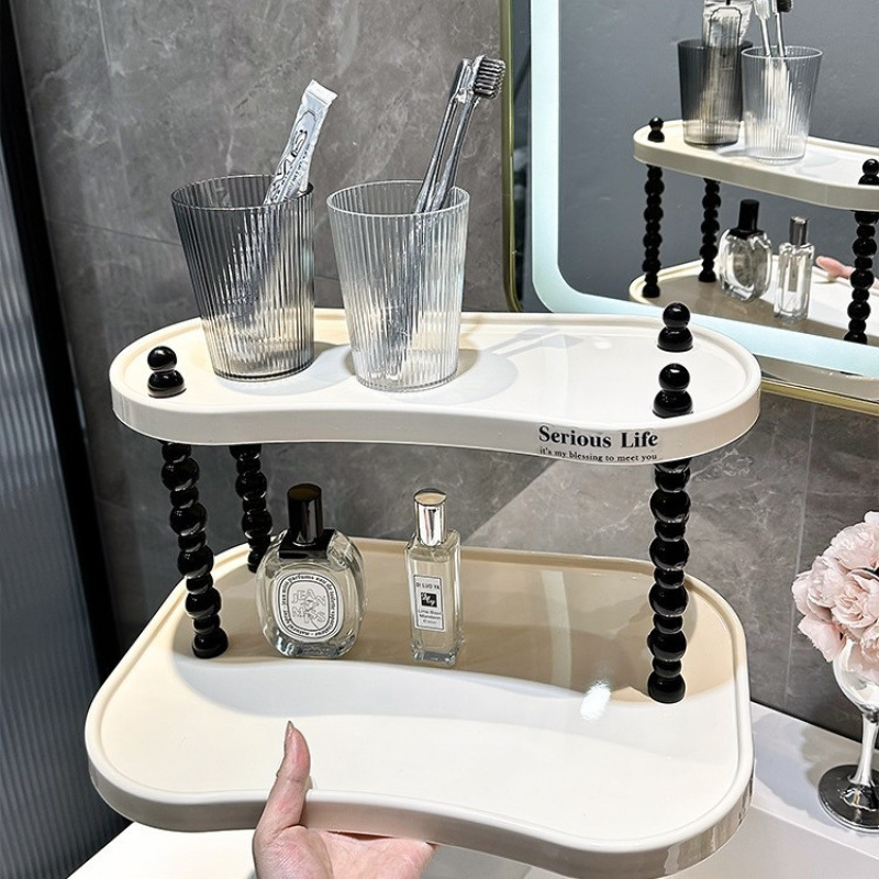 スキンケア製品収納ラック、軽くて豪華なバスルーム収納ラック、バスルーム化粧品二層棚、カウンタートップ洗面台