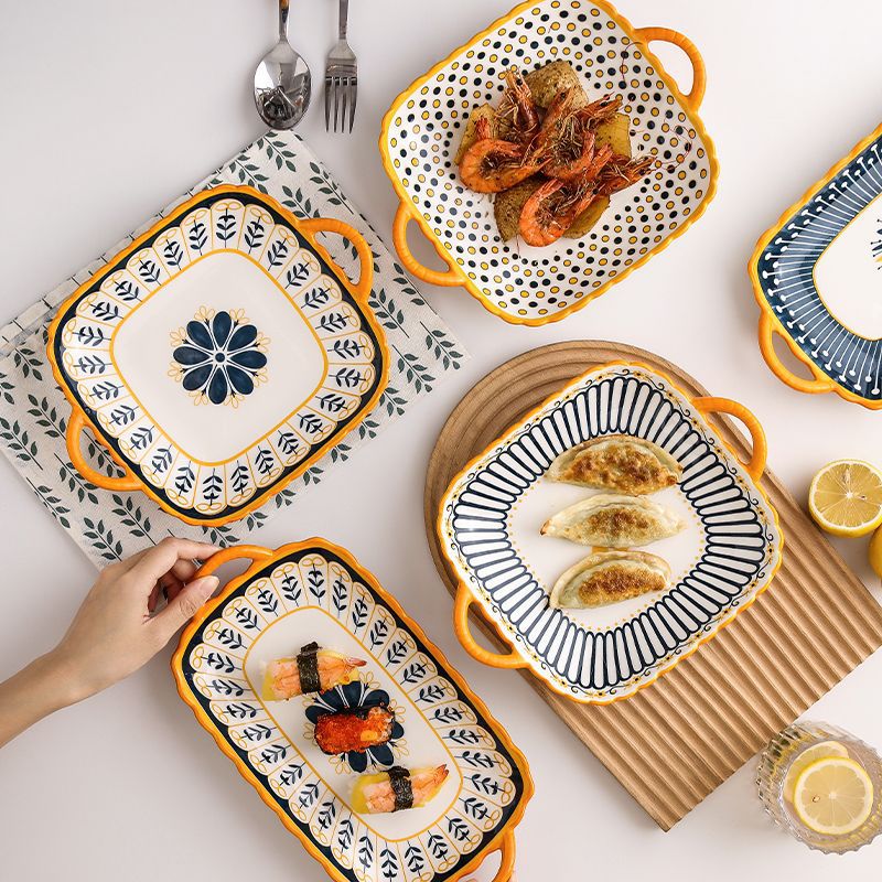 プレート インターネットセレブ 高価値ディナープレート クリエイティブ双耳角皿 フルーツプレート 厚みのあるプレート 家庭用食器 インチャンウェン