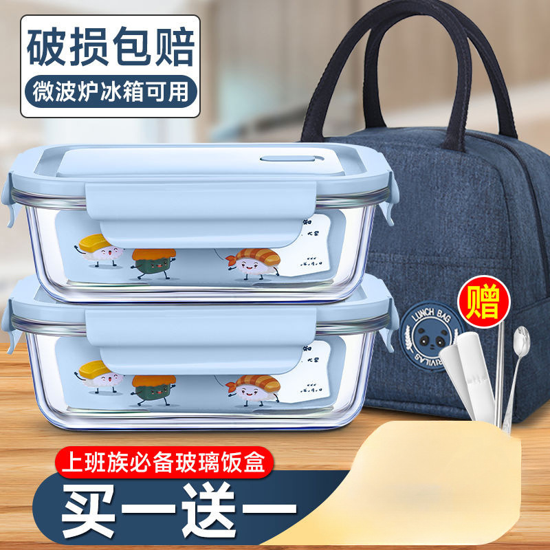 ガラス弁当箱 電子レンジ加熱可能 学生弁当箱 蓋付き サラリーマン弁当箱 鮮度保持ボックス 分離弁当箱