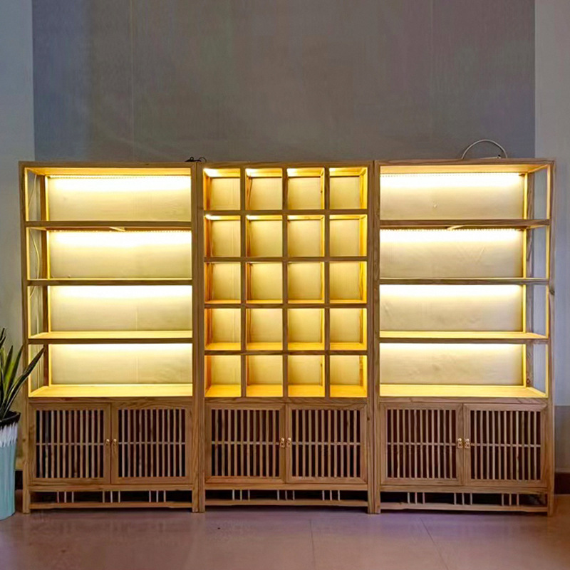 新中国式実木博古架楡木多宝閣客間物置棚仕切り茶葉格子展示棚本棚