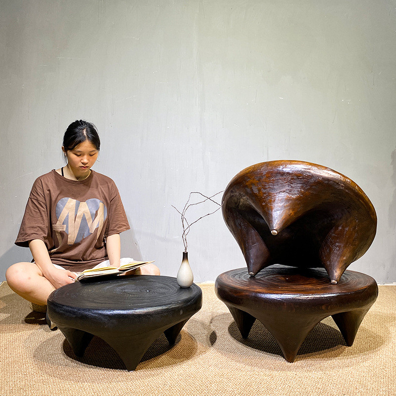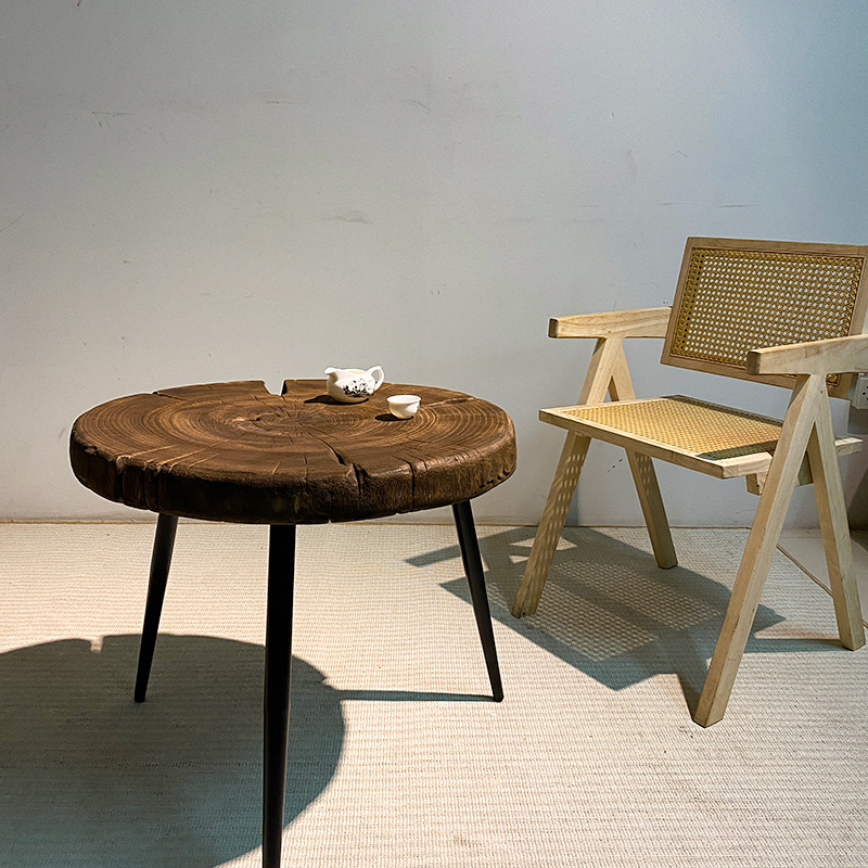 寂しい風の復古の芸術の小さいお茶のいくつかの炭化の禅の意が漂っている窓の低いテーブルの実木の乾燥した泡のテーブルの円形