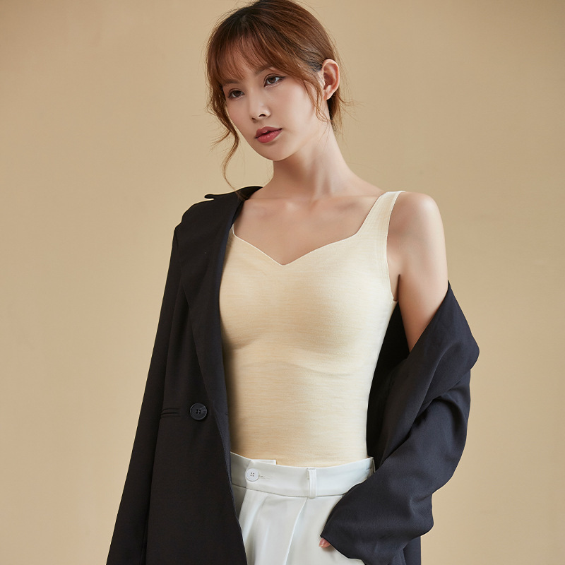 秋冬用ドイツ製レーヨンシルク自己発熱厚手シームレス保温ベスト レディース一体型固定カップ付きインナー保温服