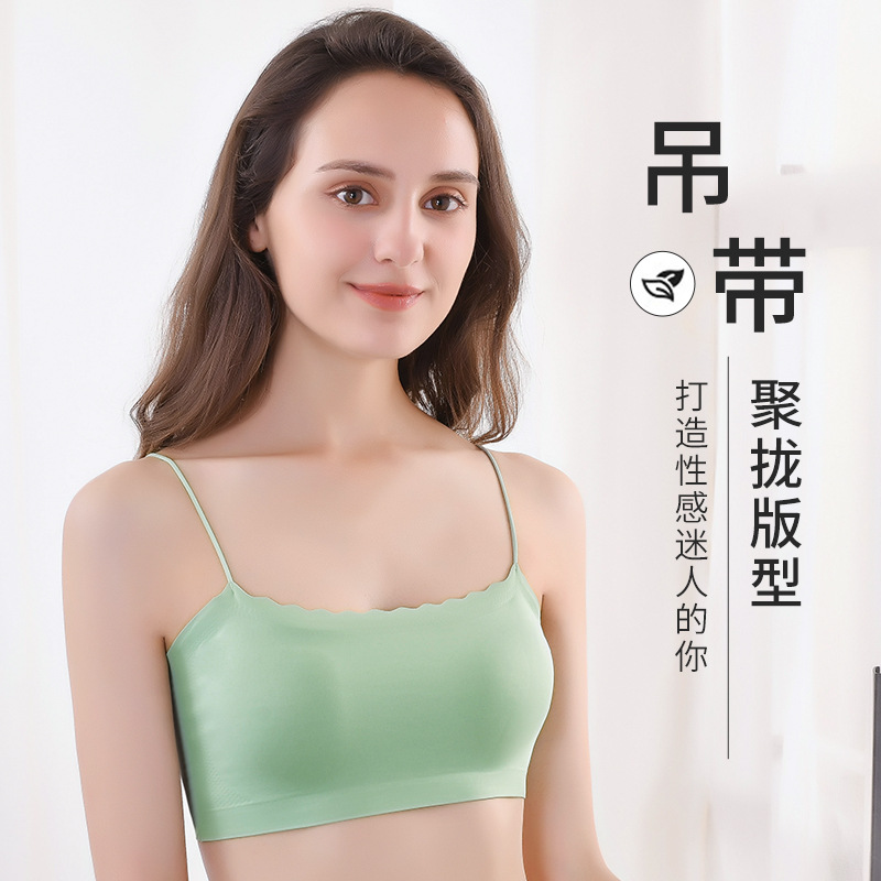春と夏のファッションの新型の清新な色のベストタイプの下着は跡がなくて、スチールリングがなくて、胸の滑り止めのバーを拭いて、デザイン感を強化します。