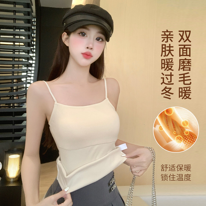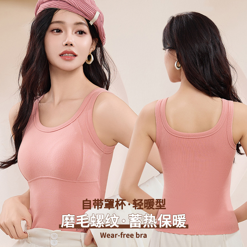 秋冬の新型ベルベットは、底を厚くして毛を磨いている一体式の胸パッド付き防寒保温ベスト下着の上着を厚くした