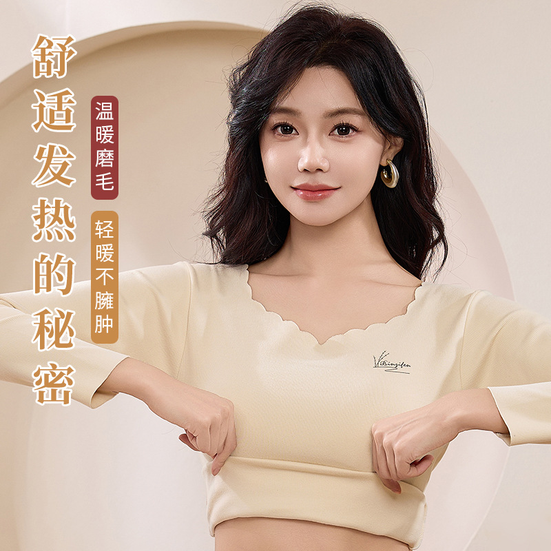 徳絨毛長袖保温下着女性とベルベットの厚い恒温自己発熱秋衣女性の美体が痩せている上着