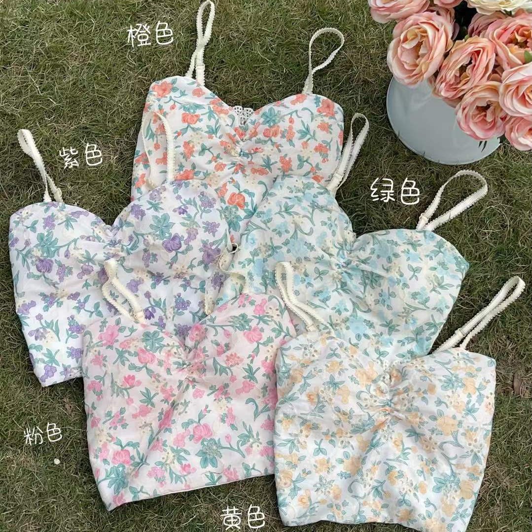 小清新の花のガーターのベストの女性は胸のクッションの洋風の中で美しい背中を掛けて胸を巻いてやせています。