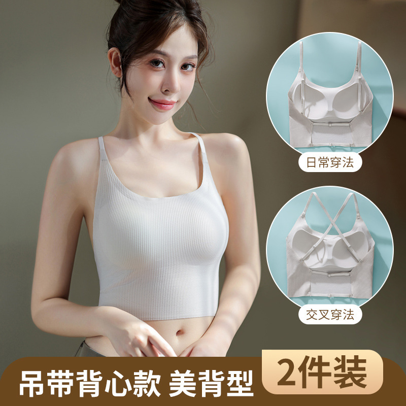 春夏シームレス薄型美背中キャミソールレディースオールインワン固定カップノンワイヤーインナーウェアアウターベスト女性用