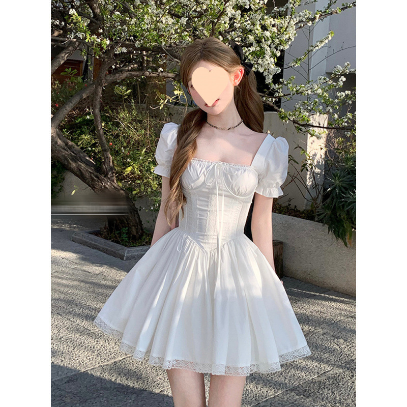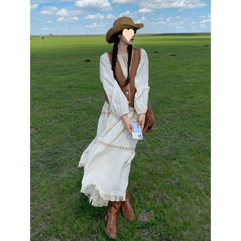 ホワイトフレンチ長袖リゾートスタイルドレス女性のための 2025 秋の新レトロメイラードベストスカートスーツ