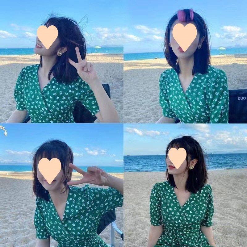 マイリトルラッキーXing Fei Congrongインターネットセレブグリーンデイジープリントドレスレディーススリムフィットカーディガン服