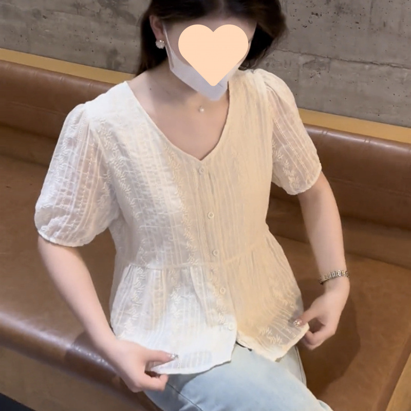 春夏の新型のゆったりとしたウエストのデザイン感の上着の女性のフランス式の優しい杏色の襟の半袖レースのシフォンのシャツのファッション