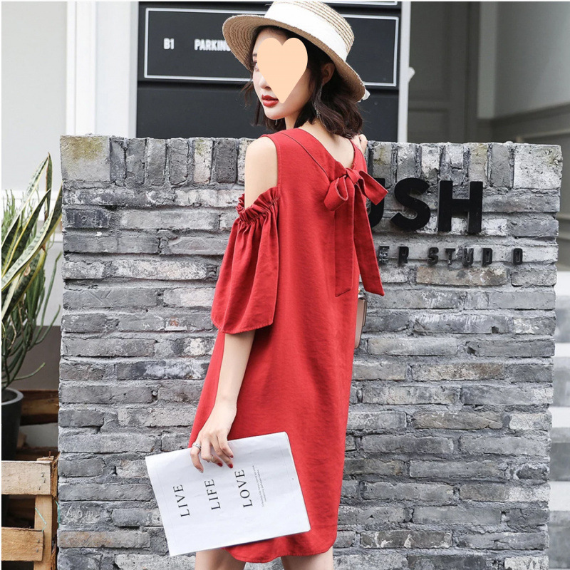 2025夏の新型のゆるい肩のシフォンの蝶結びのワンピースの小さい清の大きいサイズの婦人服の修身はやせているスカートを現します。