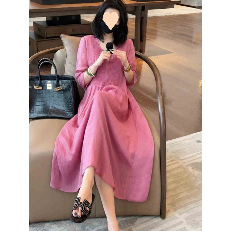女性のためのハイエンドの軽い豪華な襟ドレス 2025 夏の新しいルーズでスリムなフレンチジェントルスタイルのミドル丈スカート