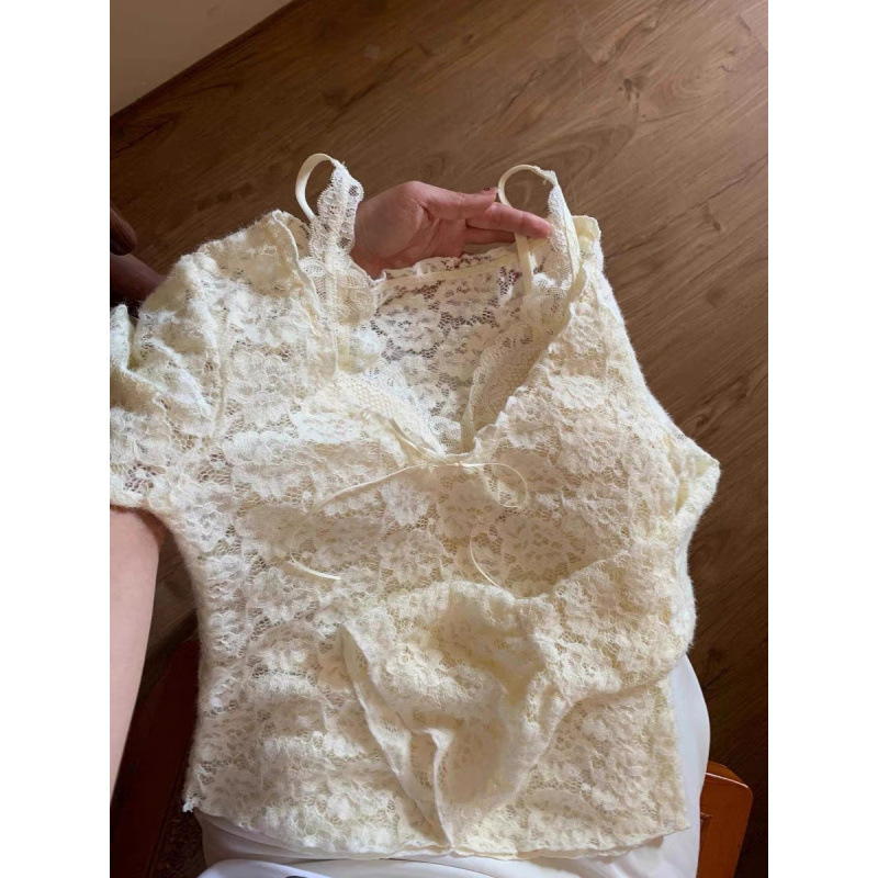 気質レースステッチレースニットキャミソール女性の夏の新しいスリムフィットショートノースリーブトップ韓国